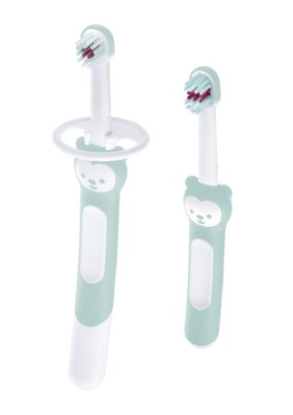 Mam Learn To Brush Set Educational & Baby Toothbrush with Safety Ring Color Turquoise 608B, 2pcs.