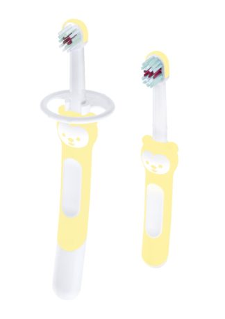 Mam Learn To Brush Set Educational & Baby Toothbrush with Safety Ring Color Yellow 608U, 2pcs.
