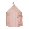 It has 2 windows with mesh fabric and a fabric door that collects.
