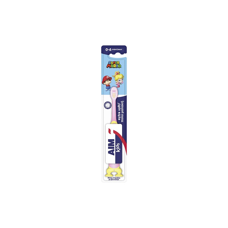 Aim Kids 0-6 years, designed for baby teeth and support base with suction cup. Small rounded head. Specially designed for children.