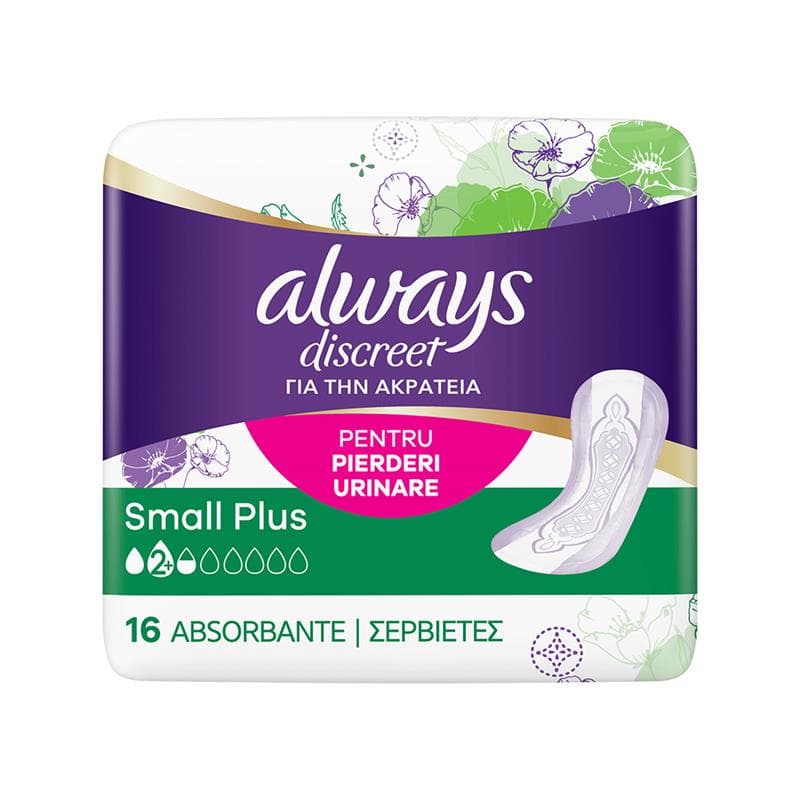 Always Discreet Small Plus incontinence pads give you safe protection that you hardly feel.