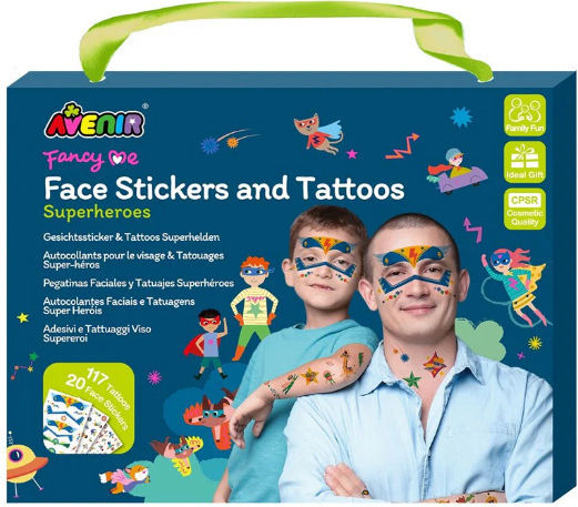With the “Super Heroes” Sticker & Tattoo Set, play turns into an adventure! Kids can become their own heroes for a while, choosing from impressive stickers and temporary tattoos with dynamic patterns.