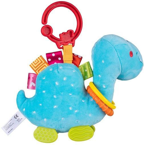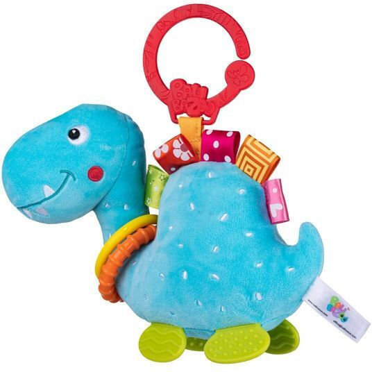 Plush pendant from Bali Bazoo. Dinusia’s body hides a bell, thanks to which the toy rings happily when shaken. The animal’s soft legs act as teethers that will bring relief to the gums of a teething child. The ring will allow you to attach it anywhere.