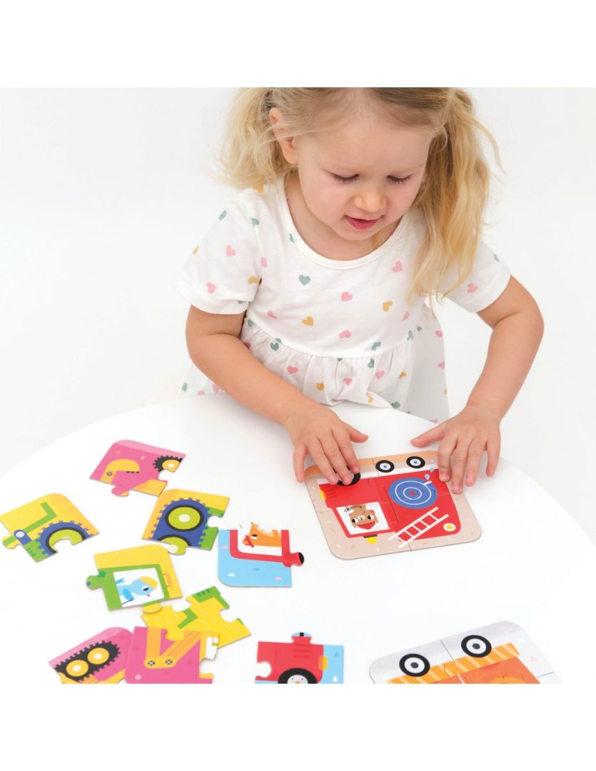 Colorful vehicles and cheerful drivers will transport your child to the world of the most special puzzles!
