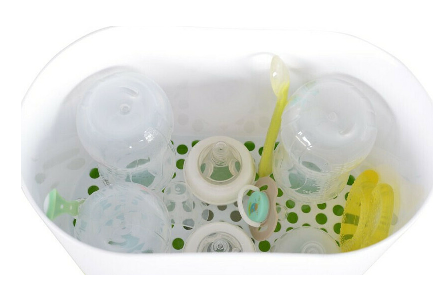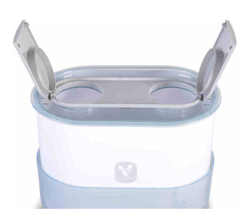 Sterilizes from 1 to 6 baby bottles of all types and sizes as well as nipples, caps and any accessory that needs sterilization.