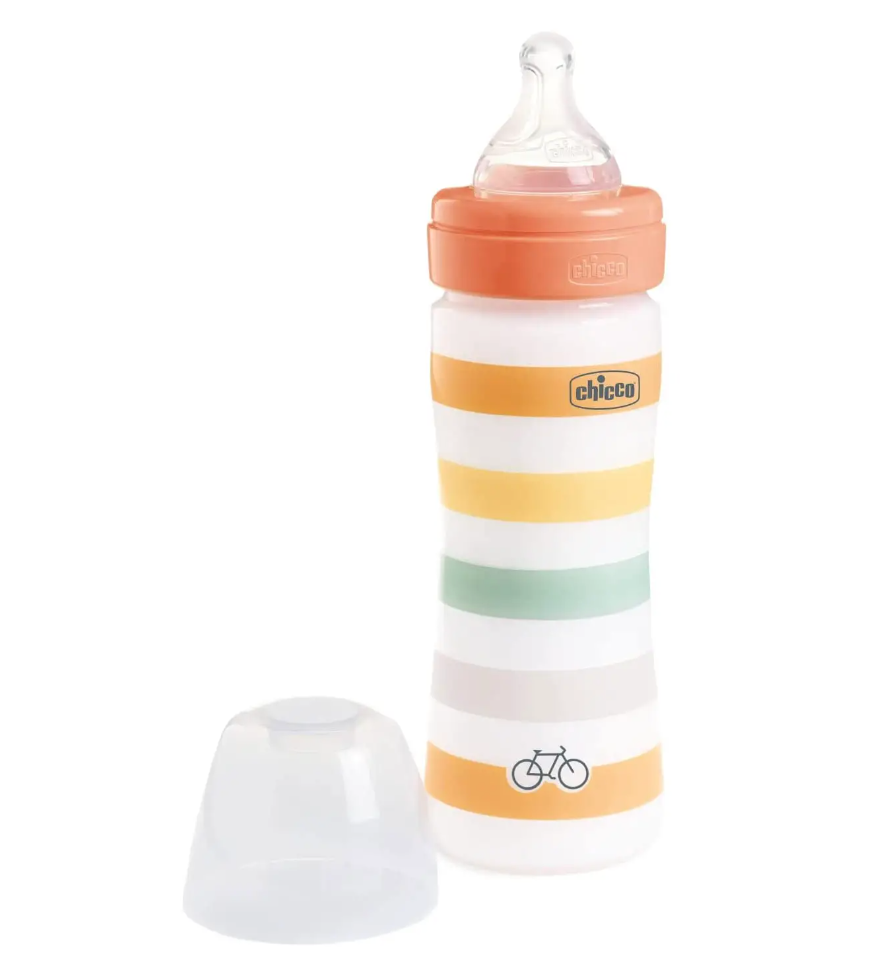 The Chicco Well-Being 250ml plastic bottle guarantees maximum practicality thanks to its ergonomic shape, is suitable for sterilization and is dishwasher safe.