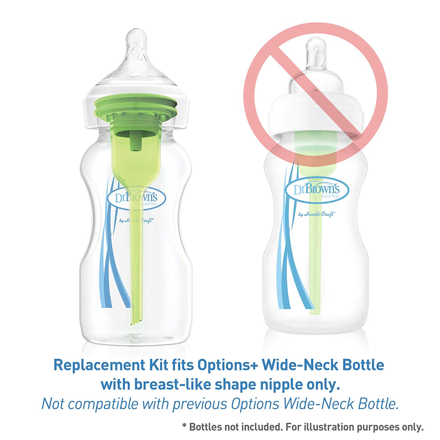Dr. Brown’s Option’s + Replacement Vent Kit, Flow Hose Replacement Tube and Stamping Bottle for Wide Neck Bottle, WR201, 2pcs