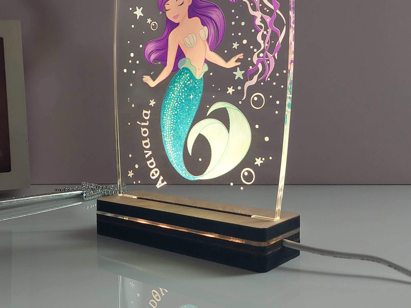 Led lamp made of acrylic and wooden handmade base of our own innovative design and construction.