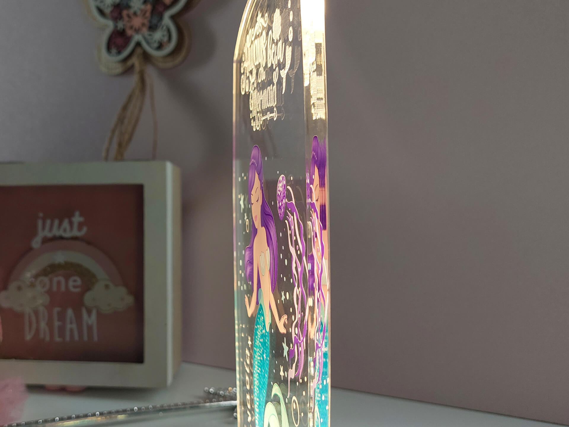 • Materials: White LED, 6mm thick transparent acrylic, Handmade wood and acrylic base
