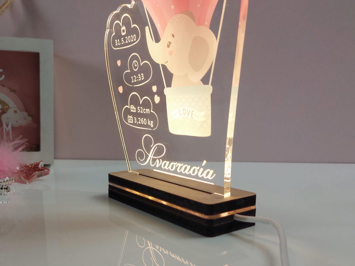 • Materials: White LED, 6mm thick transparent acrylic, Handmade wood and acrylic base
