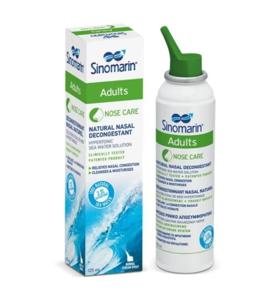 Sinomarin Adults Hypertonic Seawater Solution can be used alone, as an alternative natural solution to medicinal decongestants (topical corticosteroids, antihistamines and vasoconstrictors), or in combination with them, to improve their therapeutic effect.