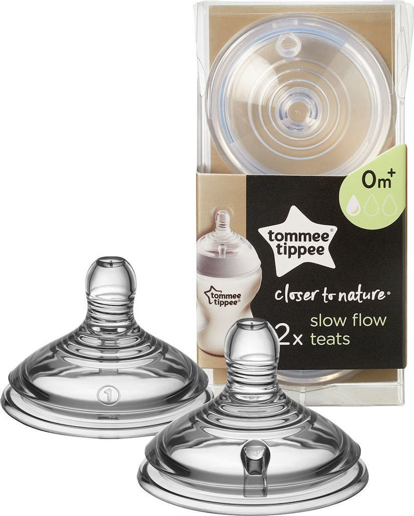 The package includes 2 low flow nipples compatible with all Closer to Nature Tommee Tippee bottles.
