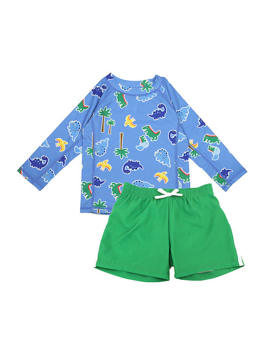 Zoocchini Children’s UV Sunscreen Set with Swimsuit, Bucket Hat, T-shirt Devin the Dino and Friends 12-24 Months 1set