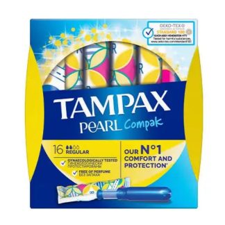 P&G, Tampax Compak Pearl Regular, Ταμπόν με Aπλικατέρ για Eυκολότερη Eφαρμογή και Kανονική ροή, 16 τμχ