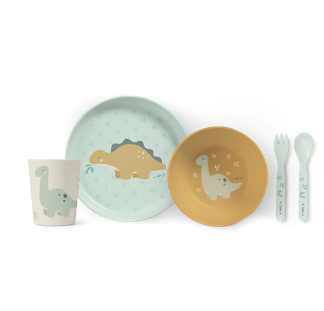 Out of stockSaro Σετ Φαγητού με Πιάτο, Μπολ, Ποτήρι, Κουτάλι, Πιρούνι “Dinos” Χρώμα Ώχρα 6m+ 50621, 1 σετ.