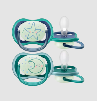 Dr. Brown’s Prevent Night Ορθοδοντική Πιπίλα Σιλικόνης 6-18m που Φωσφορίζει στο Σκοτάδι, Μπλε-Διάφανο 22008, 2τμχ.
