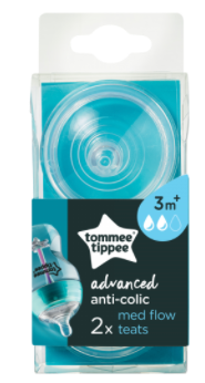Tommee Tippee Medium Flow Teats Closer to Nature Φυσιολογική Θηλή Σιλικόνης Μεσαίας Ροής 3m+, 42112852, 2 τμχ.