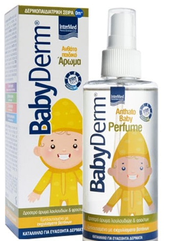 Tο BabyDerm Anthato Βaby Perfume είναι ένα αρωματισμένο νερό χωρίς οινόπνευμα που δεν αλλοιώνει το υδρολιπιδικό φιλµ της επιδερμίδας του µωρού.