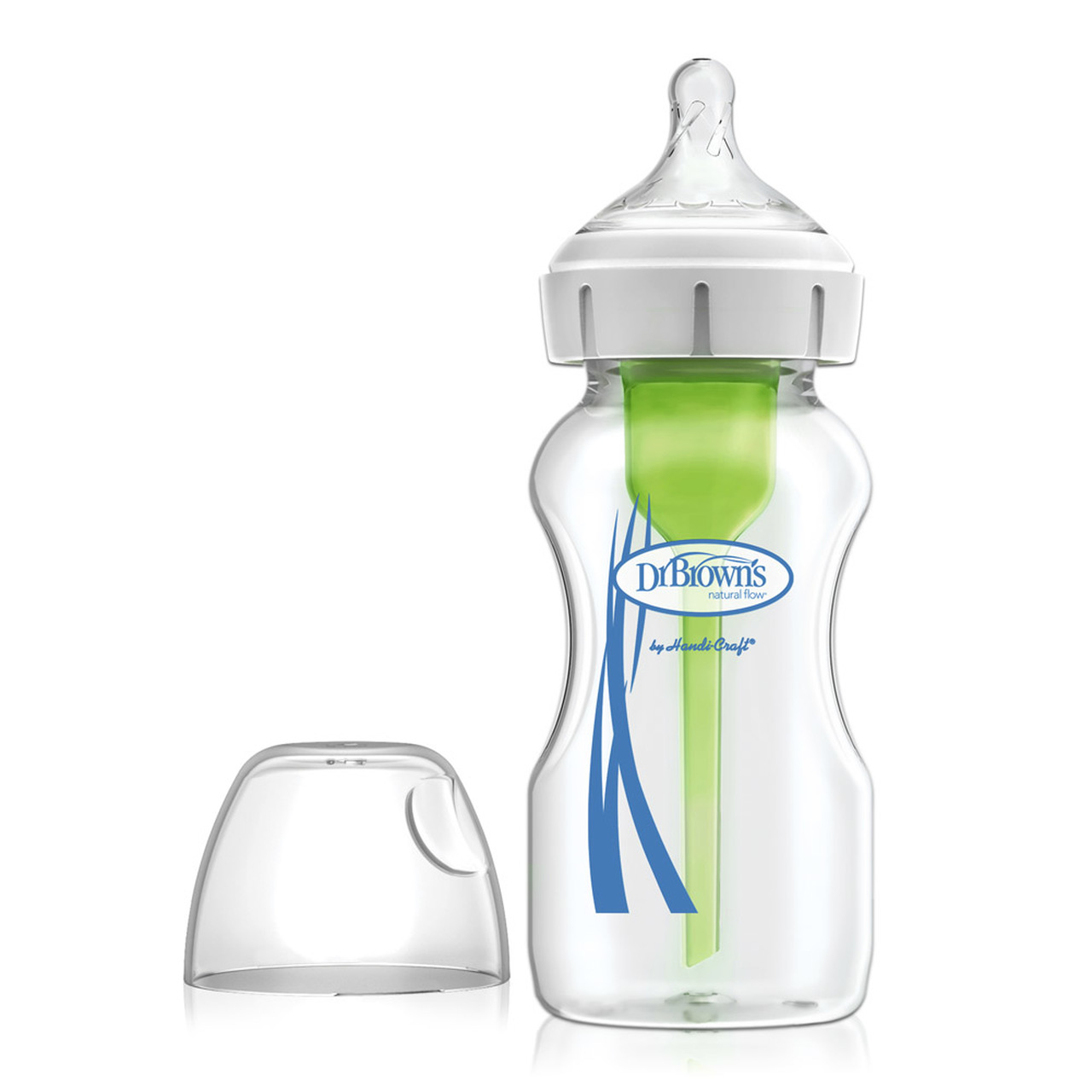 Dr.Brown’s Natural Flow Options+ Μπιμπερό Γυάλινο Αντικολικό με Φαρδύ Λαιμό Θηλή Σιλικόνης, 0m+, 270ml, 1τμχ