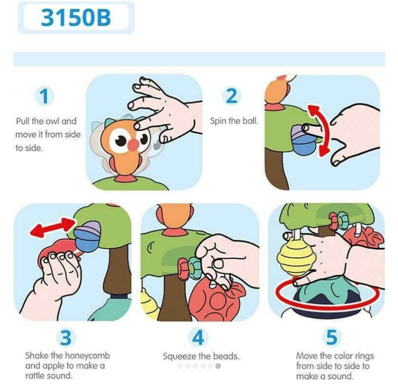 Επιπλέον το παιδί ανακαλύπτει τον κόσμο των χρωμάτων και των σχημάτων, πληροφορίες τις οποίες μπορεί να περιεργαστεί μέσω της αφής και της όρασης.