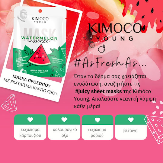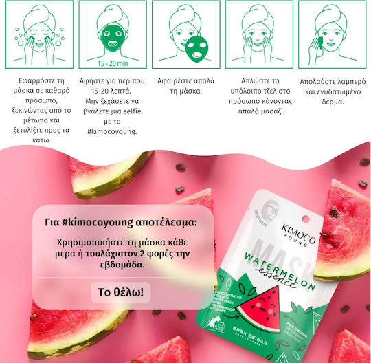 Ενυδατική μάσκα προσώπου με εκχύλισμα καρπουζιού και Glacial Water. Αυτή η μάσκα είναι πλούσια σε εκχύλισμα καρπουζιού και περιέχει δροσιστικά συστατικά όπως εκχύλισμα αμαμελίδας και ροδιού, που τονώνουν και ανανεώνουν την επιδερμίδα.