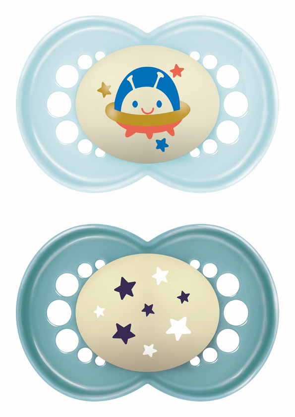 Mam Original Night 260SBc Ορθοδοντική Πιπίλα Σιλικόνης που Λάμπει στο Σκοτάδι 16m+, Χρώμα Γαλάζιο-Μπλε, 2τμχ.