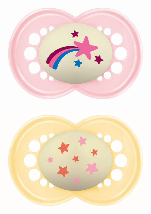 Mam Original Night 260SGc Ορθοδοντική Πιπίλα Σιλικόνης που Λάμπει στο Σκοτάδι 16m+ Χρώμα Ροζ-Κίτρινο, 2τμχ.