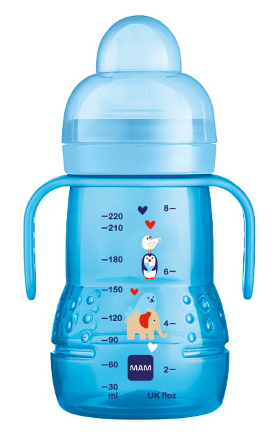 Το MAM Trainer+ είναι το ιδανικό μπιμπερό για το μωρό που αρχίζει να πίνει μόνο του. Δεν στάζει και είναι εύκολο στο κράτημα.
