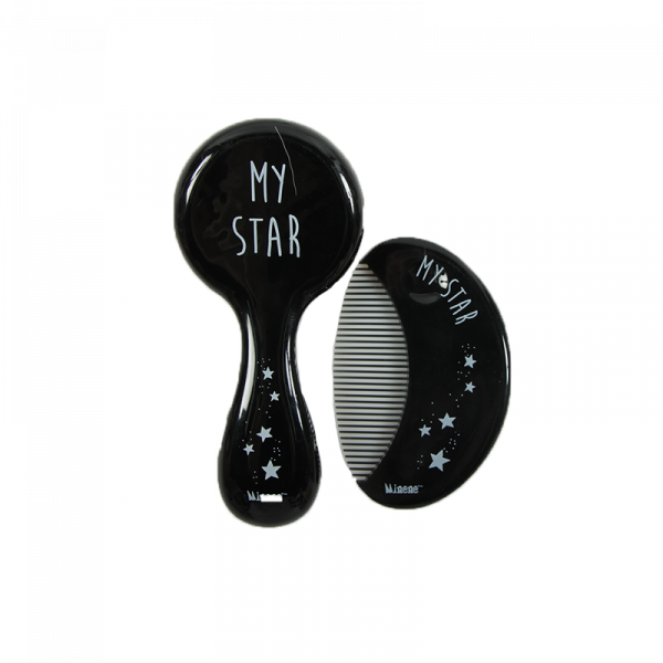 Minene My Baby Hair Brush & Comb Set, Σέτ Βρεφική Βούρτσα-Χτένα, Μαύρο,1τμχ.
