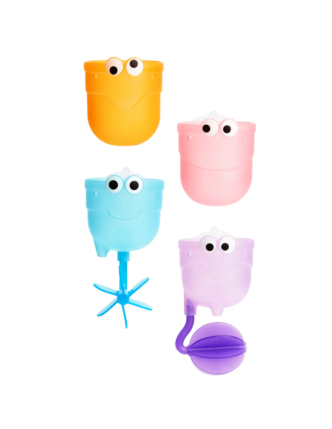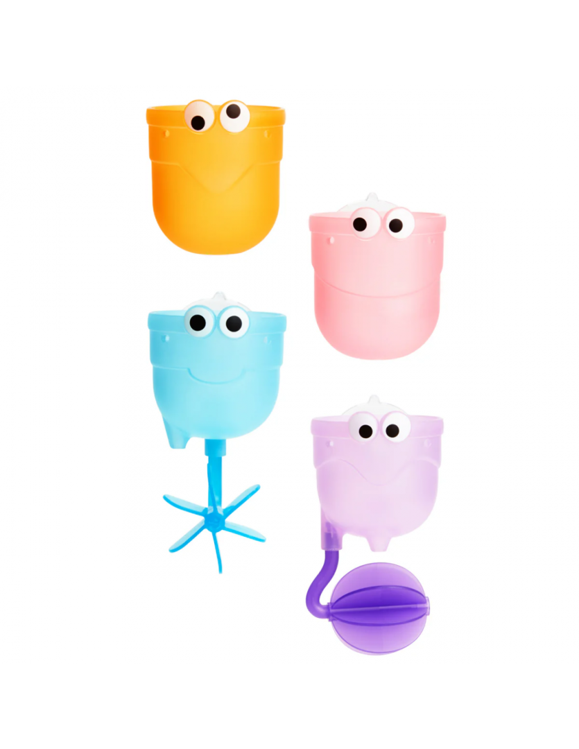 Αυτό το δημιουργικό παιχνίδι μπάνιου περιλαμβάνει 1 δοχείο για να συγκεντρώσετε και να ρίξετε νερό, καθώς και άλλα 3 δοχεία από τα οποία πρέπει να χυθεί το νερό.