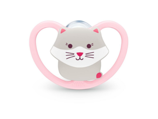 Nuk Space, Πιπίλα Σιλικόνης 0-6m για Μέγιστη Ροή Αέρα, Ρόζ Γατούλα 10.739.511, 1τμχ