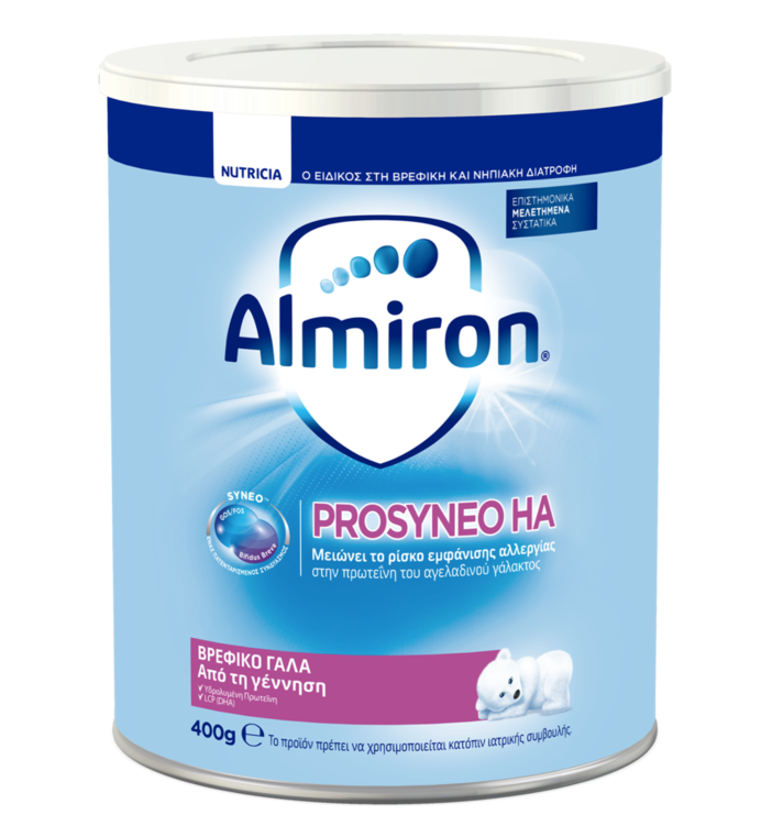 Βασισμένη στα 40 χρόνια έρευνας στην αλλεργία, η ομάδα μας, των τετρακοσίων επιστημόνων και ειδικών, έχει συμβάλλει στην ανάπτυξη του ανώτερου επιστημονικά βρεφικού γάλακτος, AlmironProsyneo HA. Το AlmironProsyneo HA είναι ειδικά σχεδιασμένο να μειώνει το ρίσκο εμφάνισης αλλεργίας στην πρωτεΐνη του αγελαδινού γάλακτος στα βρέφη.